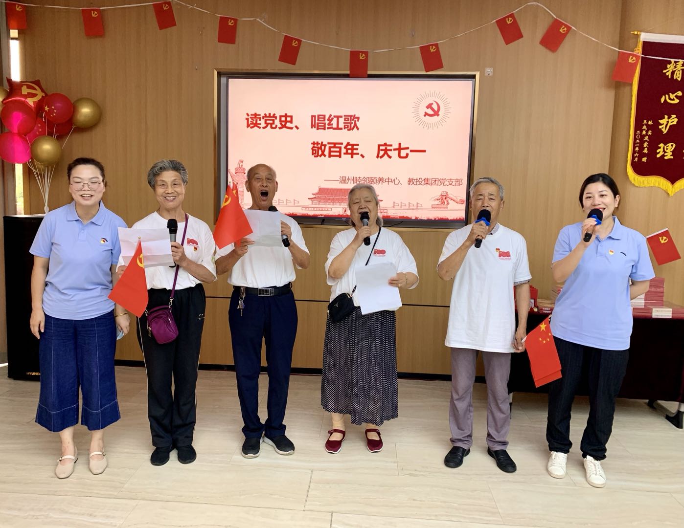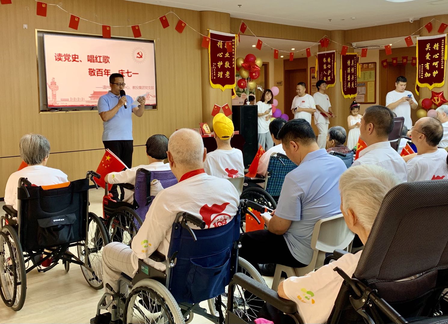 为扎实开展党史学习教育,把学习成果转化为“我为群众办实事”的实际行动,7月1日下午,教投集团党支部发挥其“红色书角”党建品牌辐射作用,将红色书籍送到了温州睦邻颐养中心,为老党员、老同志送学上门,并与老党员一起开展“读党史唱红歌,敬百年庆七一”主题活动。