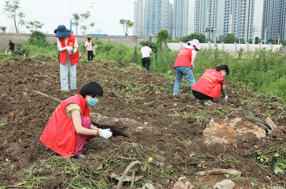 环商泄洪河道二期系滨江商务区内重要的新开挖河道,且未来云谷社区一期位于滨江商务区内的核心区位,其工程现场及周边绿化带的日常维护为土地管理的重要工作内容之一。为确保本次清障行动顺利实施,滨江公司提前研判风险,认真制定预案,对具体工作进行了充分准备和周密部署。实施清障工作当日,清障攻坚队协同属地滨江街道、鹿城区行政执法中队等10余名工作人员,一边对现场农民进行政策解释,一边帮忙采摘农作物,同时组织挖机进场清理,维持现场秩序。在工作人员的同心协力下,历时3个多小时,一举完成了约7000多平方米土地农作物及附着物清理。