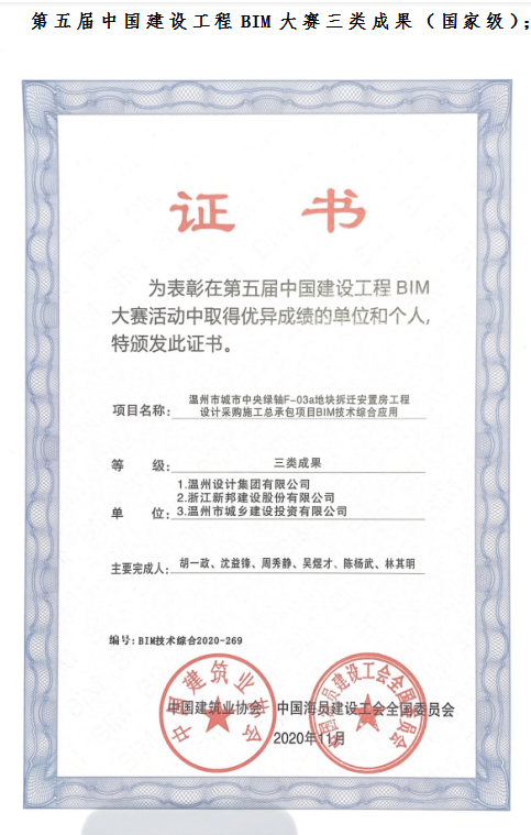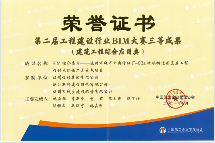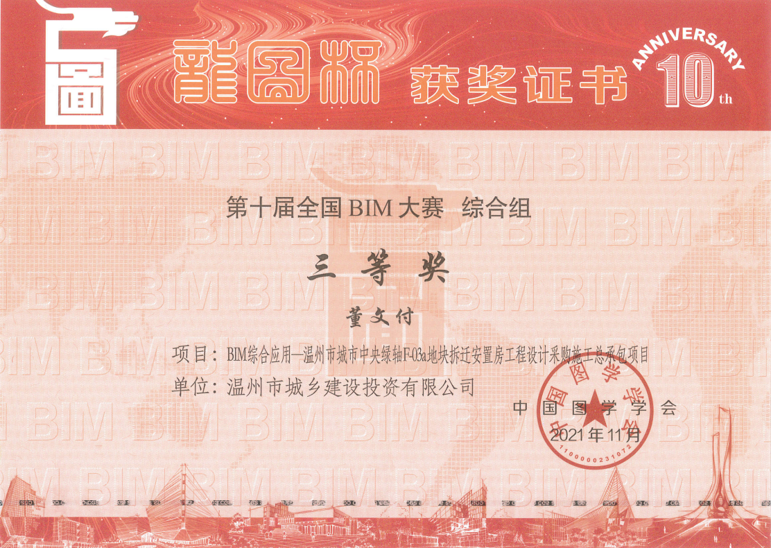 近日,建投公司负责建设的中央绿轴F-03a地块拆迁安置房工程,荣获2021年“龙图杯”第十届全国BIM大塞综合组三等奖、2021年第二届工程建设行业BIM大赛BIM综合应用三等成果奖和2020年第五届中国建设工程BIM大赛综合应用三类成果奖。