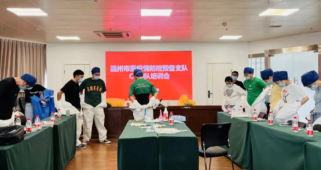 为了更规范、更安全地做好疫情防控相关工作,近日,集团中队邀请温州第七人民医院的三位医护老师,为大家详细指导演示了核酸人员信息扫码录入、蓝色外科防护服穿脱、医疗垃圾打包等注意事项。观摩讲解后,大家再次对“七步洗手法”、新冠防疫专用防护服穿脱进行了复习。本次培训以精细化、针对性的丰富内容,有效提升了预备队员的科学防护能力和实战操作技能,让预备防护员们更“专业”。