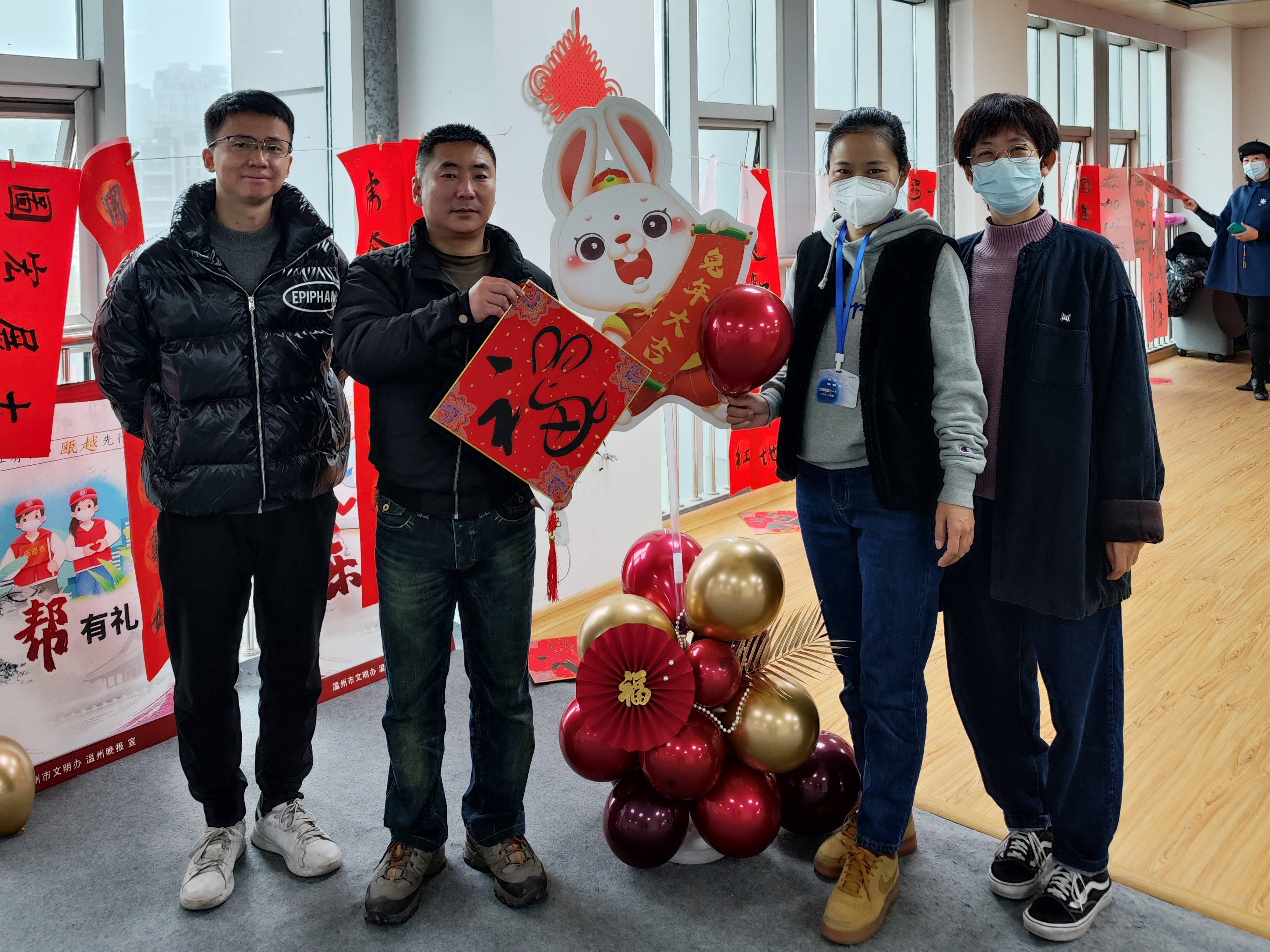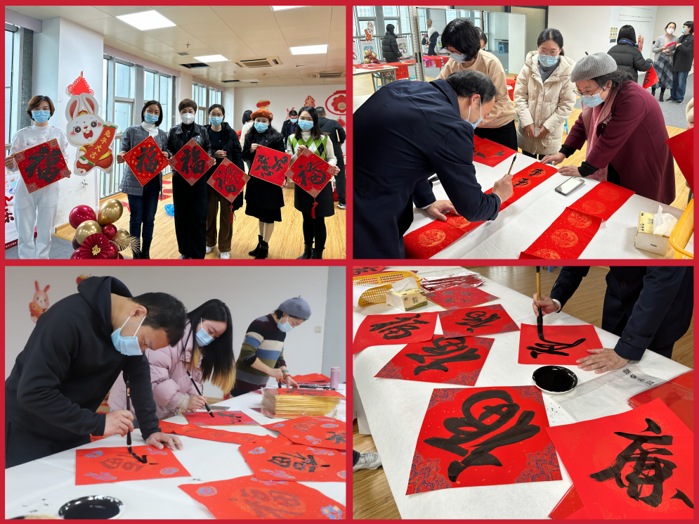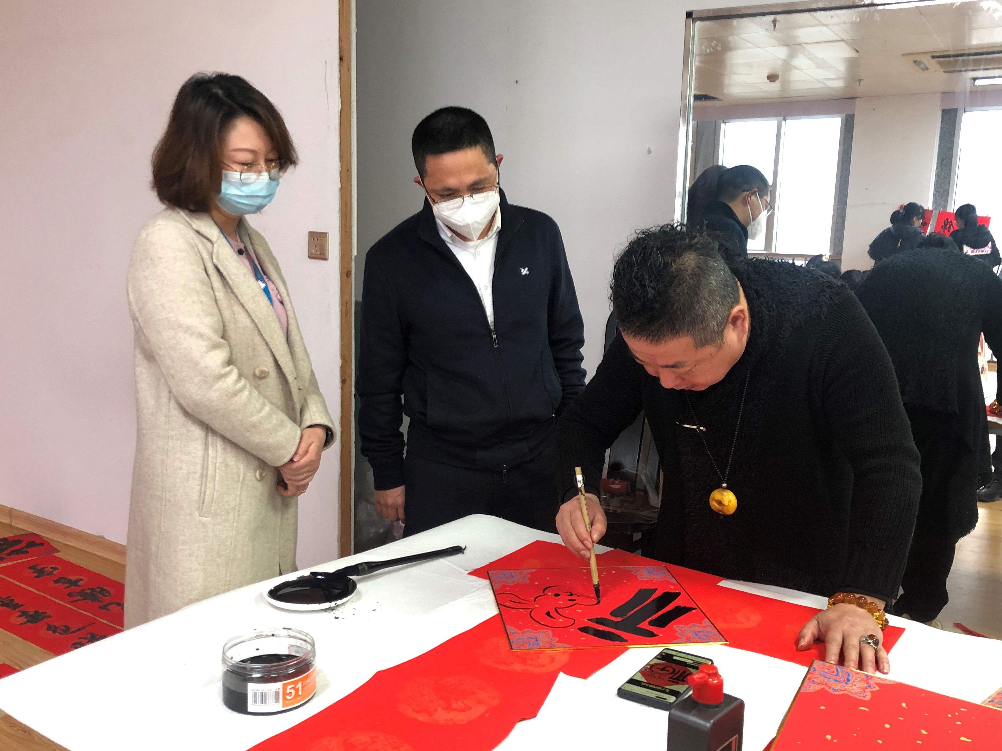 新春将至,贴春联、挂福字寄托着大家对新一年的憧憬。现场多位资深书法老师和集团书法“大咖”一起为职工写春联、送福字,一副副寓意美好祝愿的春联、一个个充满吉祥的“福”字,营造出欢乐喜庆、文明祥和的节日氛围;“一身正气辞旧岁两袖清风迎新春”……一幅幅“廉”味十足的春联,让廉风吹进“廉节”之中。职工们也加入其中,或带着作品和吉兔合影,大展宏“兔”,或在老师的指导下挥毫泼墨,书写对新春的祝福,期待新年“兔”飞猛进。