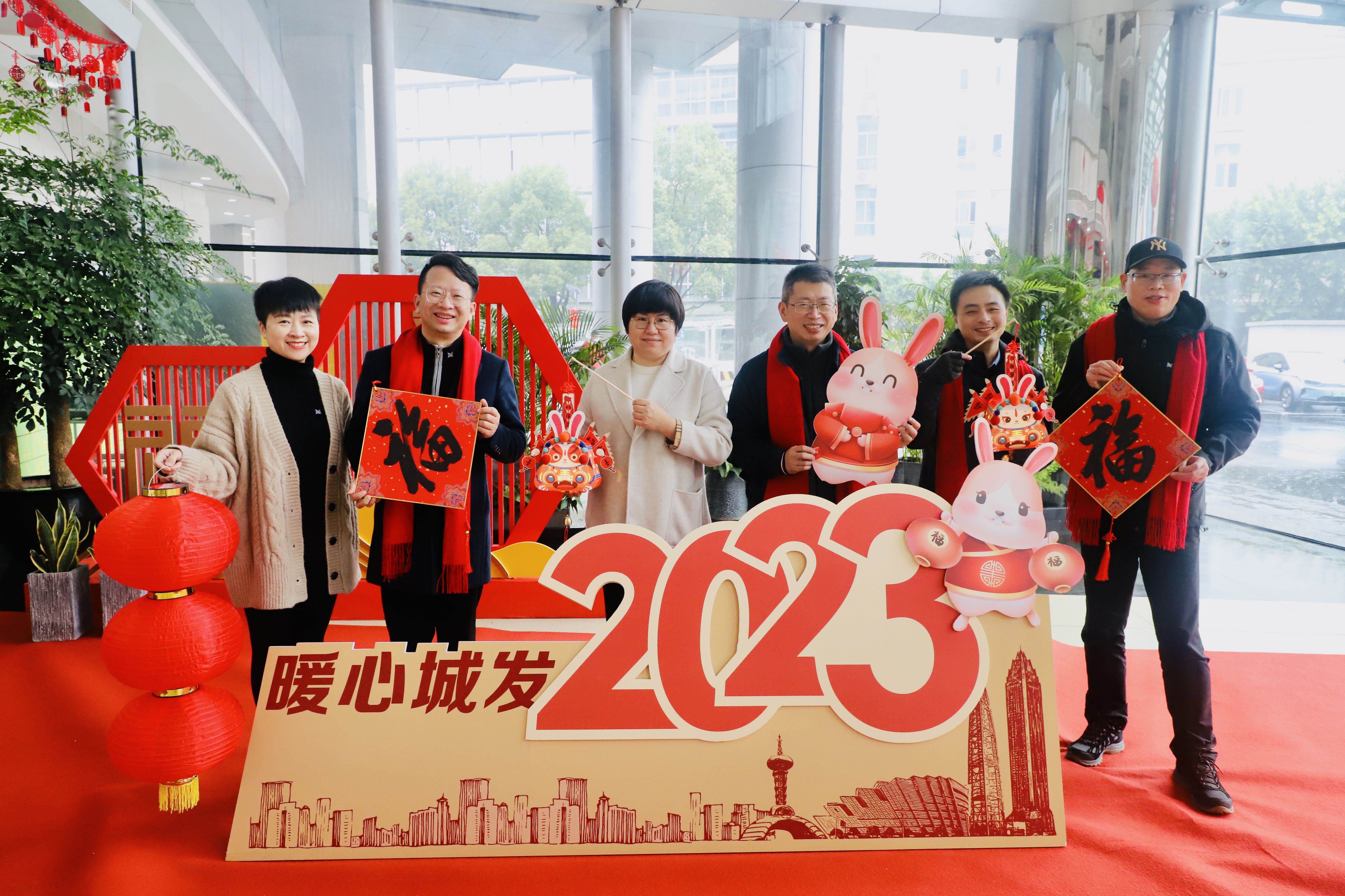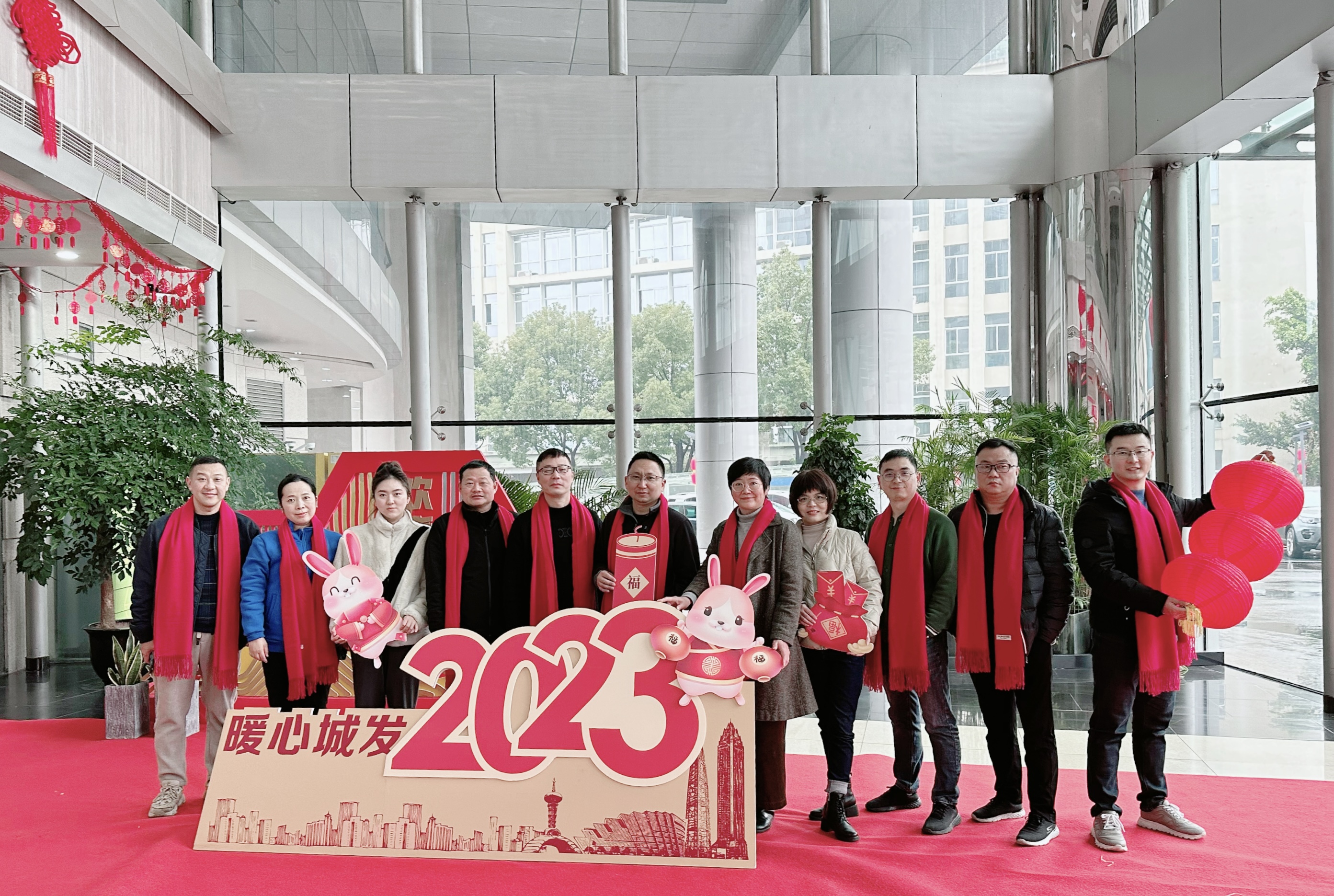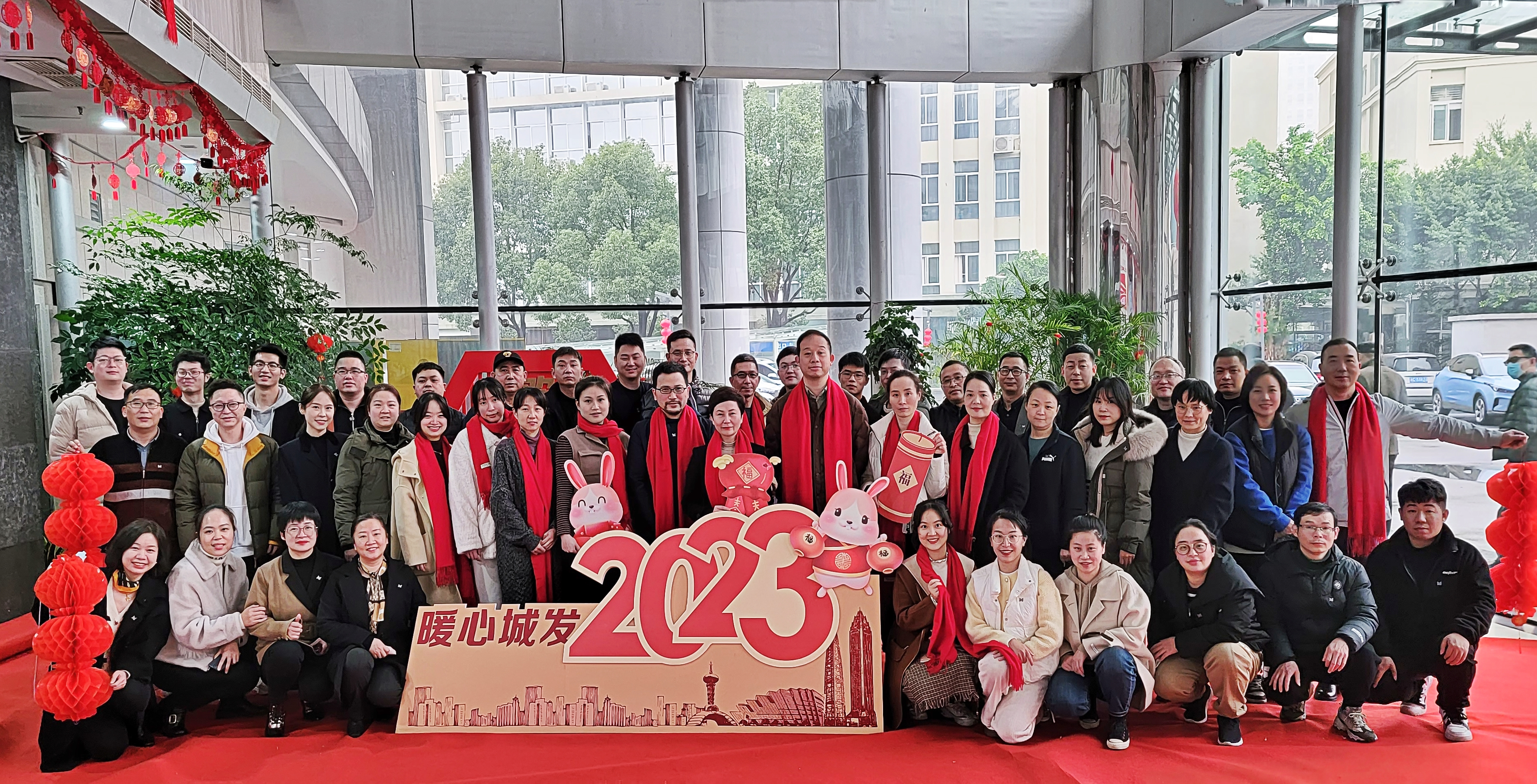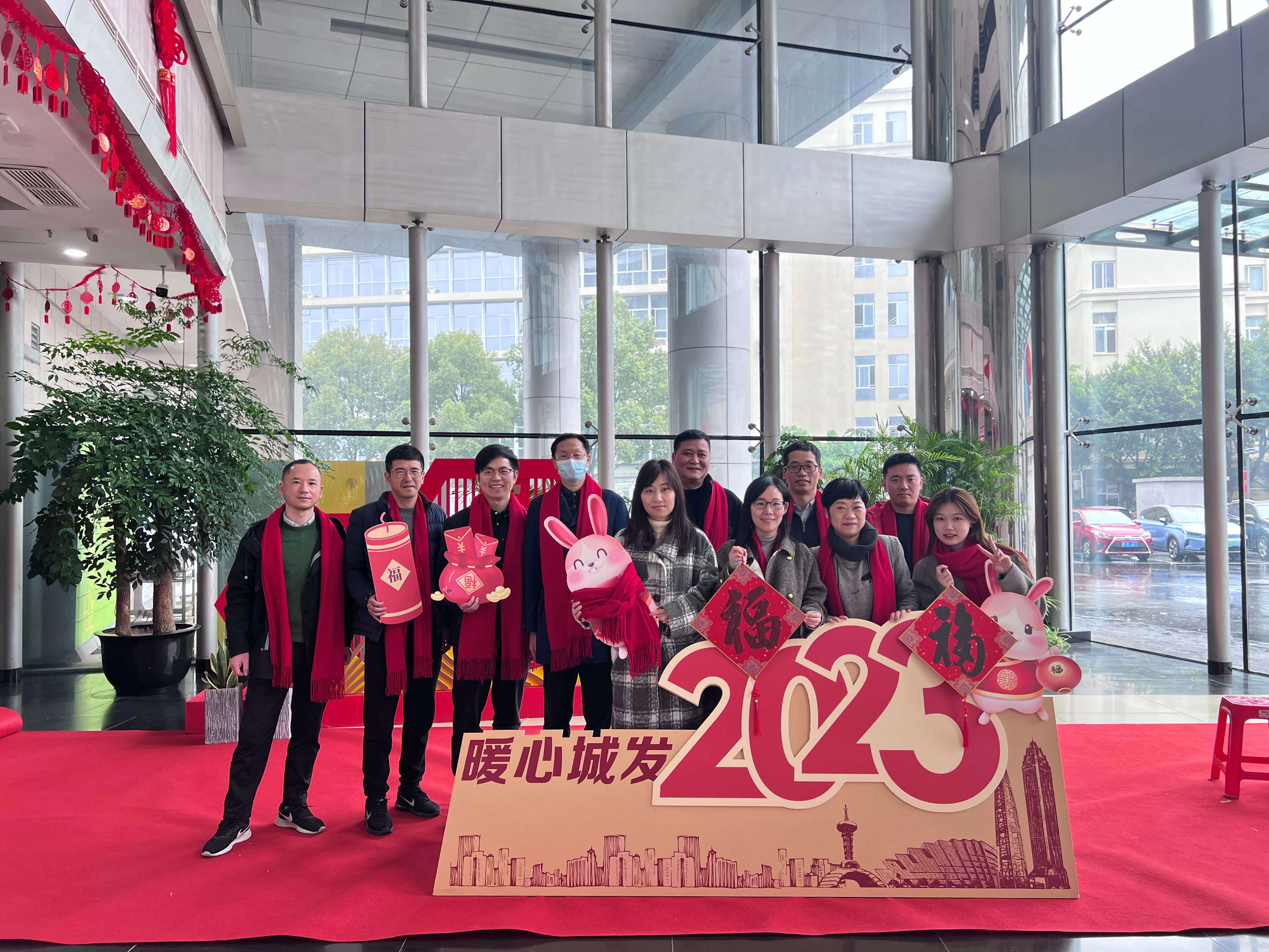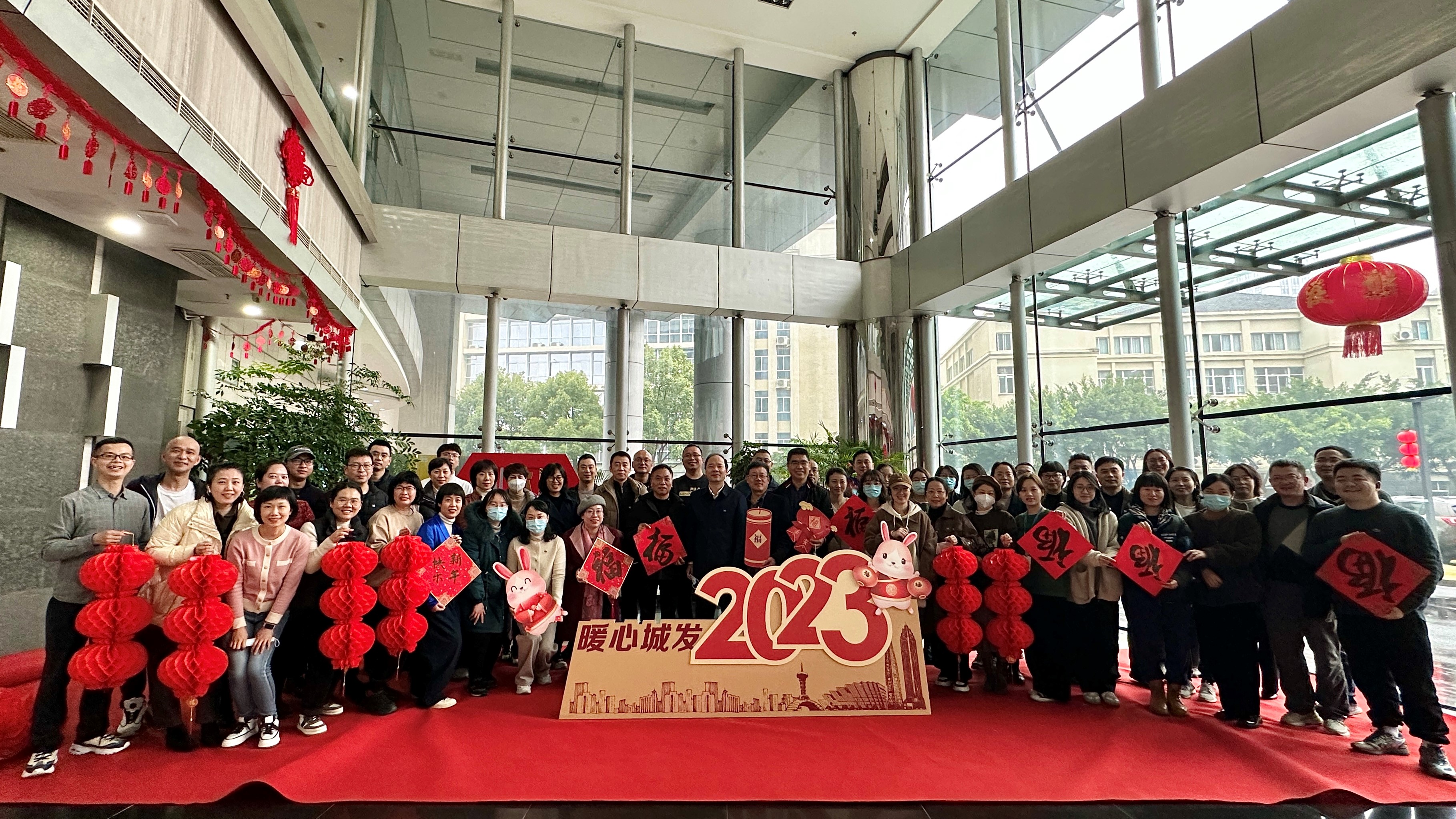 各单位(部室)组织成员在一楼迎新春背景前拍摄“全家福”,用照片记录共同走过的美好一年,互致新春祝福,同心展望2023,以更加饱满的精神和昂扬的姿态迎接新的一年。