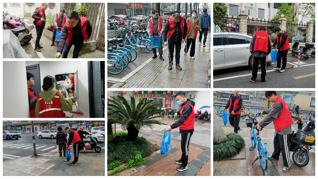 在庆年坊社区,志愿者们手拿垃圾铲、小铲子、锄头等各种清洁工具,撸起袖子,弯下身子,仔细拔除杂草、清扫死角垃圾、清除堆积杂物、清理墙面上的“牛皮癣”,整齐排放共享单车,把辖区内外打扫得干干净净,为群众营造整洁优美的生活环境。