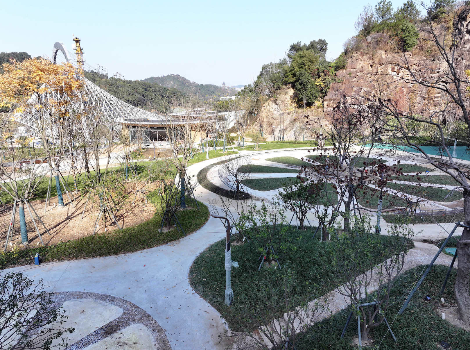 具体到园区布局,可谓独具匠心。市城发集团园博园公司三标段攻坚组成员胡金瓯介绍,柑橘园中心为柑橘品种集中展示区,如同一个巨大的柑橘切面铺展开来,游赏小径分布其中。围绕橘录广场,橘类、柚类、橙类等专类展示区层层展开,汇聚了来自各地的特色品种。游客能直观对比柑、橘、橙、柚、枳等不同种类的各种形态。园中《橘录》纪念花园,以橘瓣为灵感的花池中种植着橙色系花卉,两株特选“红橘”成为视觉焦点。