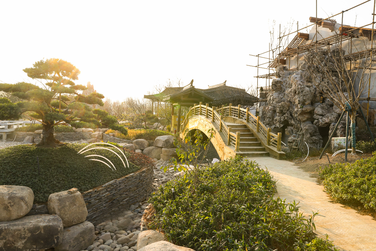 从一座原始孤岛“变身”而来的瓯越园,融古韵与现代于一体,以伴随式设计和技术融合传统的思路,在所有城市展园中率先完工。施工中,项目攻坚团队带领设计团队深扎工地,和施工方“点对点”沟通。如复刻宋代风格的门头,创新采用混凝土与木构结合的方式,既保留传统神韵,又满足耐久性和防火等现代安全标准。甚至,这里的每个景石摆放和植物搭配,都有专家现场把控,确保图纸上的设计意境能真正落地。