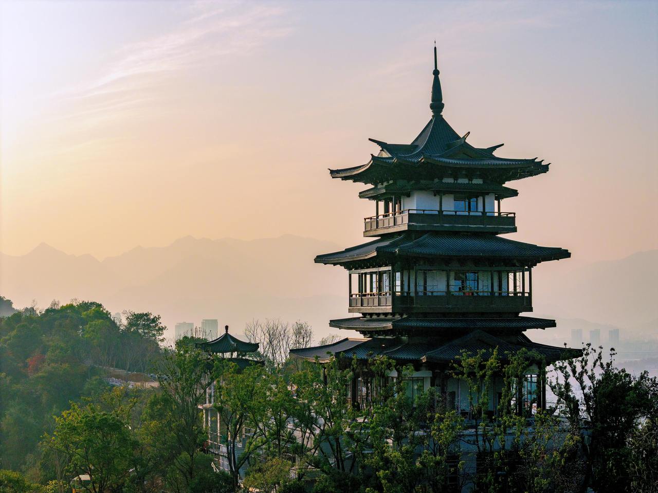 最终,11座山居单体、3组水居、10处亭廊,仿佛是从这片山林溪涧中自然生长而出。现场所见,不是突兀的建筑,而是完整的、呼吸着的、富有诗情画意的古典园林意境画卷。
