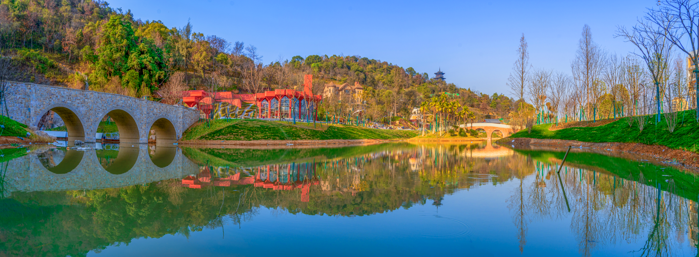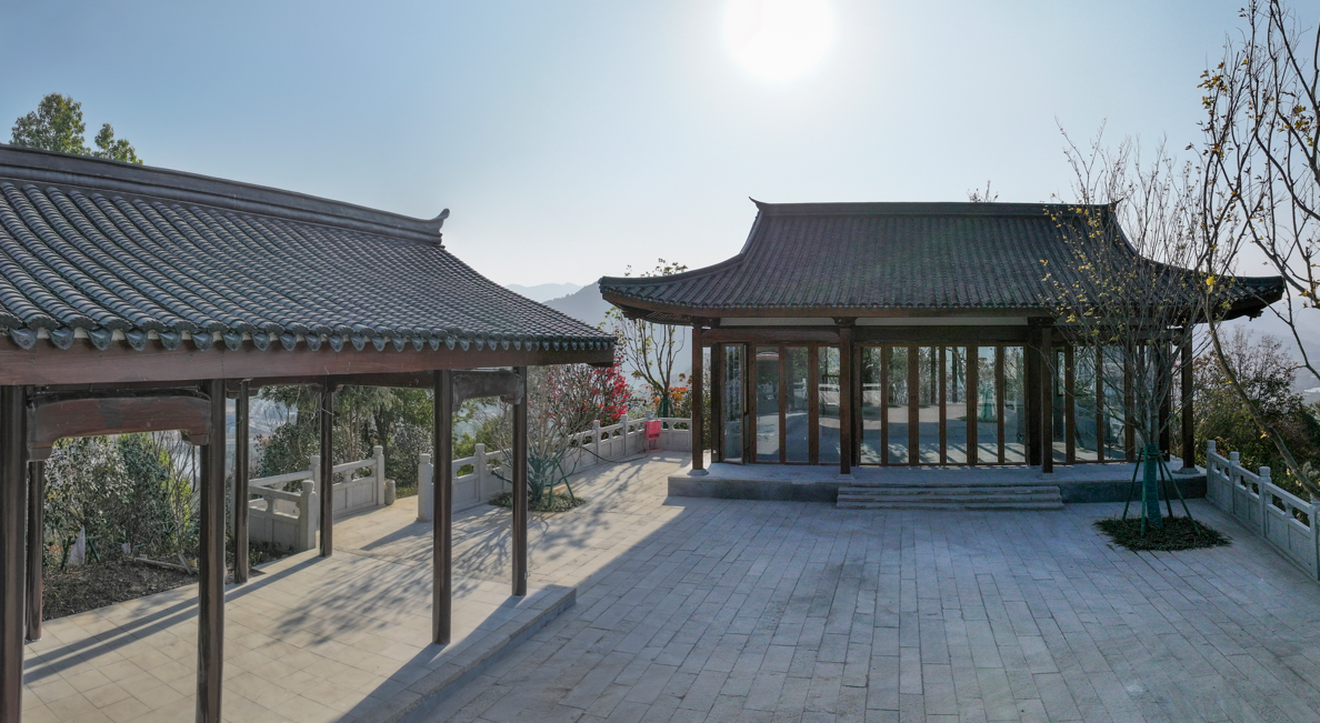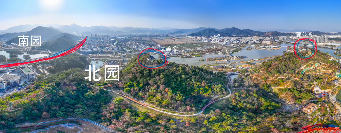随着大美堂、不言轩、十字驿、北园仙道及连接它们的山脊步道全部落成,游客未来登顶俯瞰全园的游览体验已完整呈现。