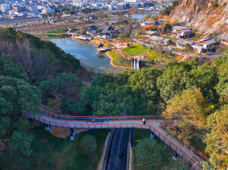 陡峭山顶开展的建设,亦是生态保护理念的生动实践。为严格保护仙门山、老虎山的原生林木,项目团队创新攻克了重型建材的上山难题。“所有钢结构、大型木料与石材都无法依靠常规运输完成。”市城发集团园博园项目二标段攻坚组成员王天翔介绍,“我们最终通过精准测算,设置了一条长距离、缓坡运行的索道,使建材‘凌空穿越’林梢,直达工地,最大程度保护了原有植被与山道。”