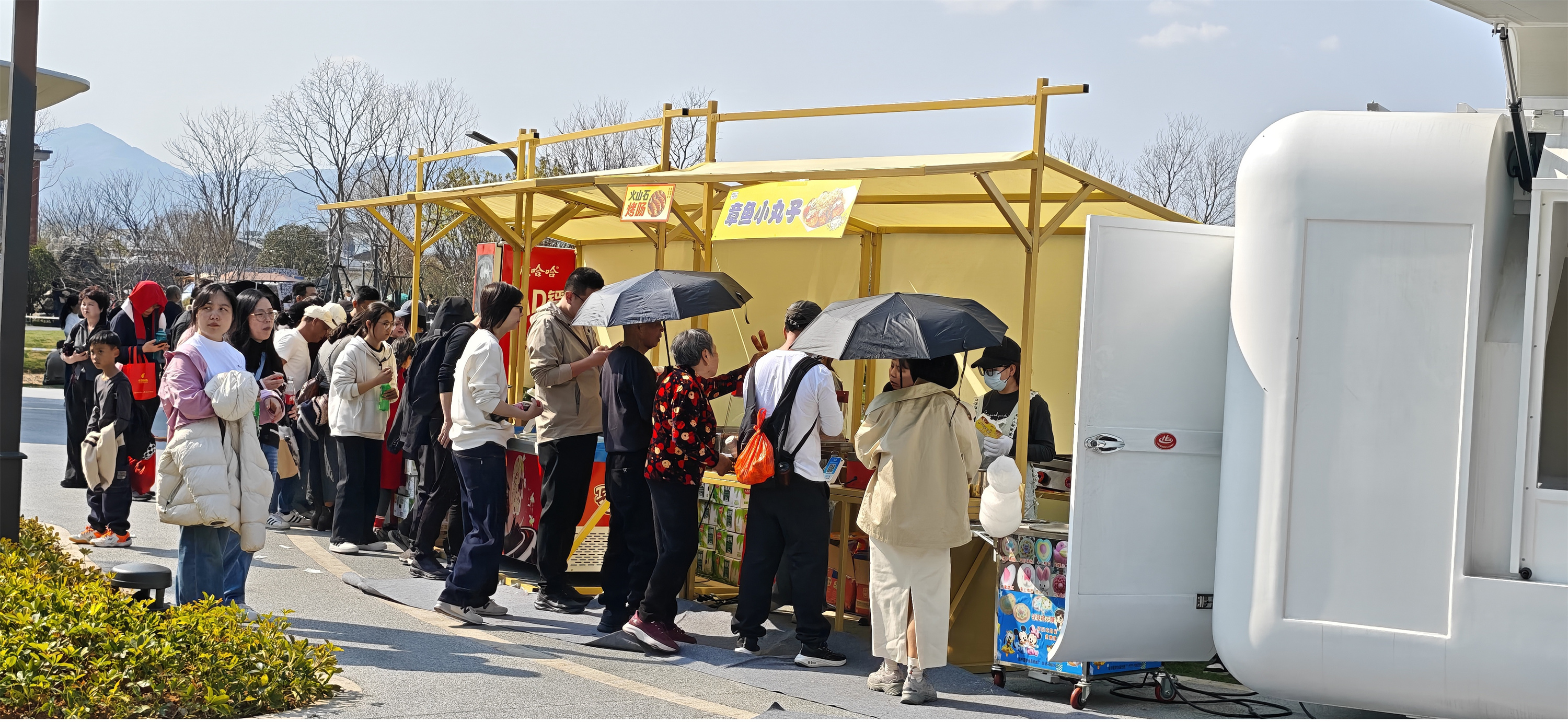 运营保障方面,除了三溪会市、园博工坊和美食广场外,园内布局了27处固定餐车、后备箱餐车以及售卖点,满足游客即时消费需求;26辆接驳车穿梭往来,尽力疏通人流。游客服务端,日均60名游服人员、40多名城发志愿者,分布14个关键点位轮岗值守,提供问询导览、走失寻人、失物招领、物品租赁等服务。物业服务方面,日均300多名保安保洁人员奋战在设施运维、秩序维护和环境保洁的第一线,守护园区平安洁净。